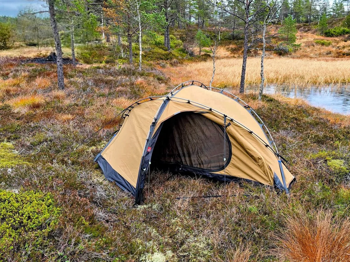 Der Aufbau des Vern 1 PC ist kinderleicht und mit etwas Übung in nur 2–3 Minuten erledigt. Sobald das Zelt steht, hast du einen warmen, sicheren Rückzugsort. Die großzügige Apsis bietet ausreichend Platz für Ausrüstung und Kochvorrichtungen.
