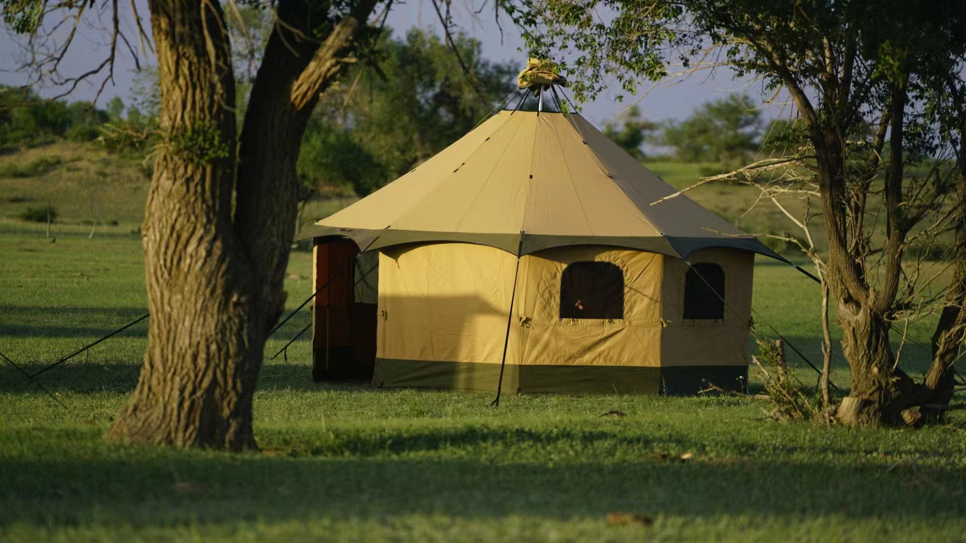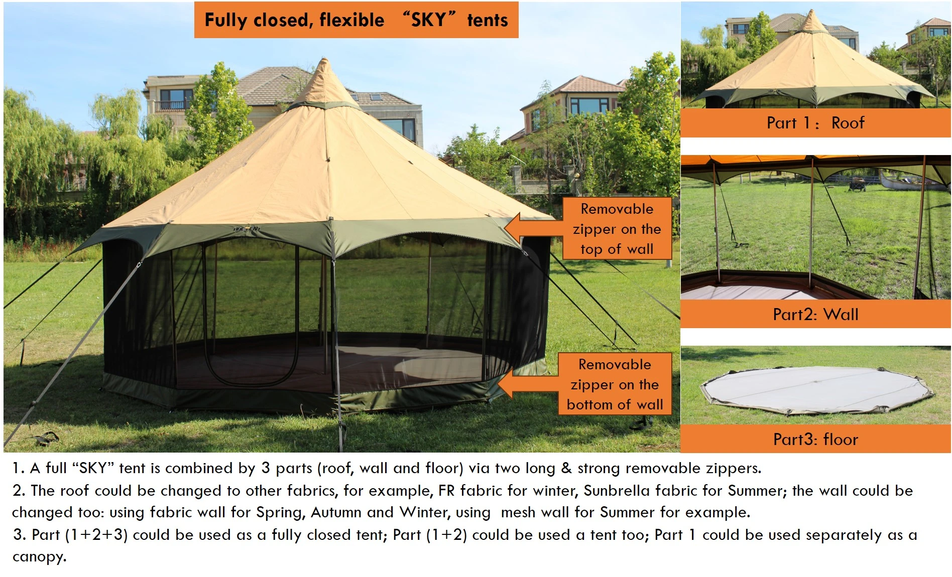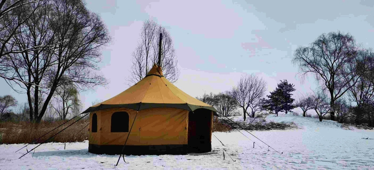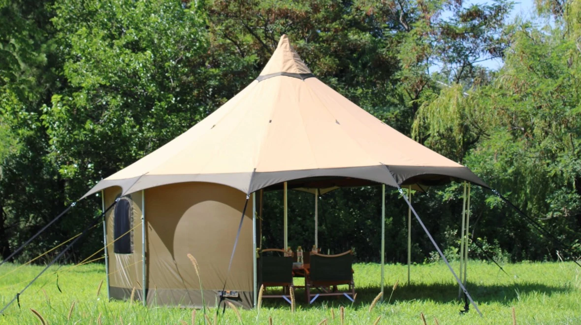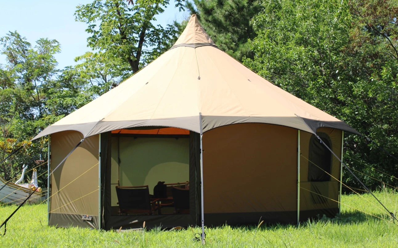 - 15-Personen-Zelt: 2 große U-förmige Türen, 4 U-förmige Fenster, Seitenwände teilweise oder vollständig hochrollbar